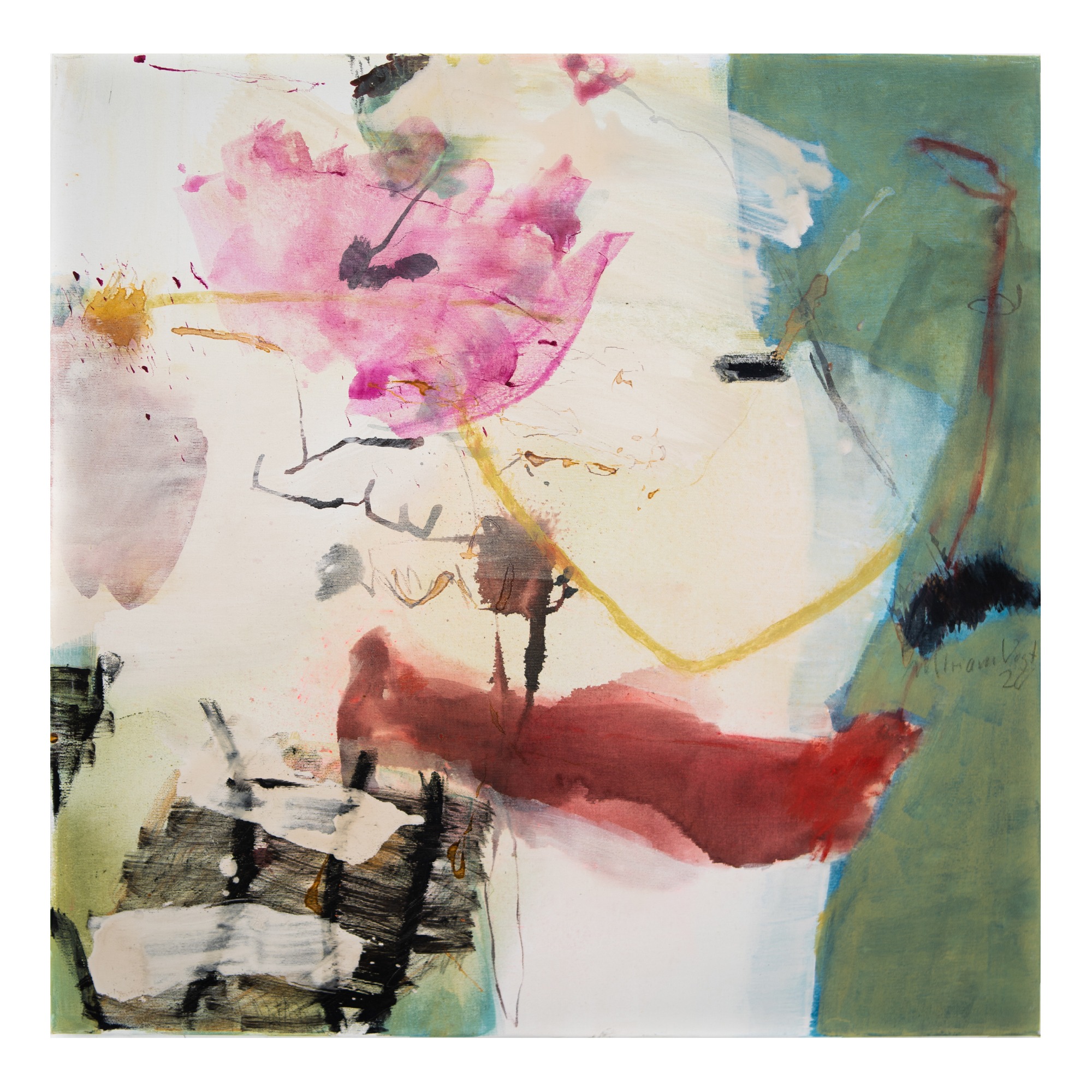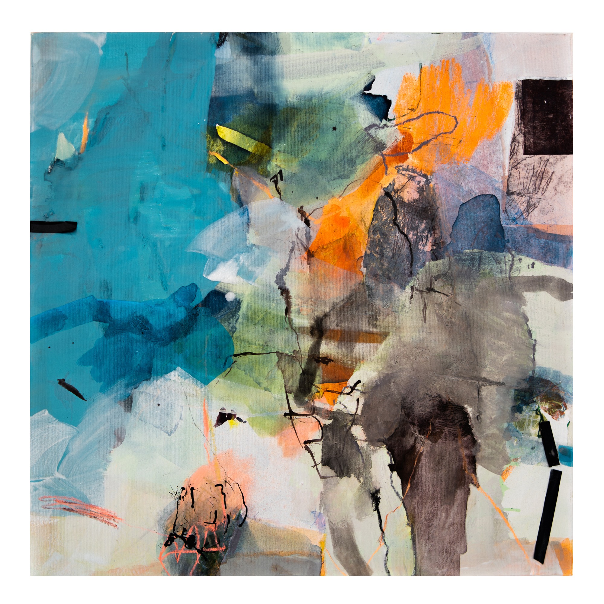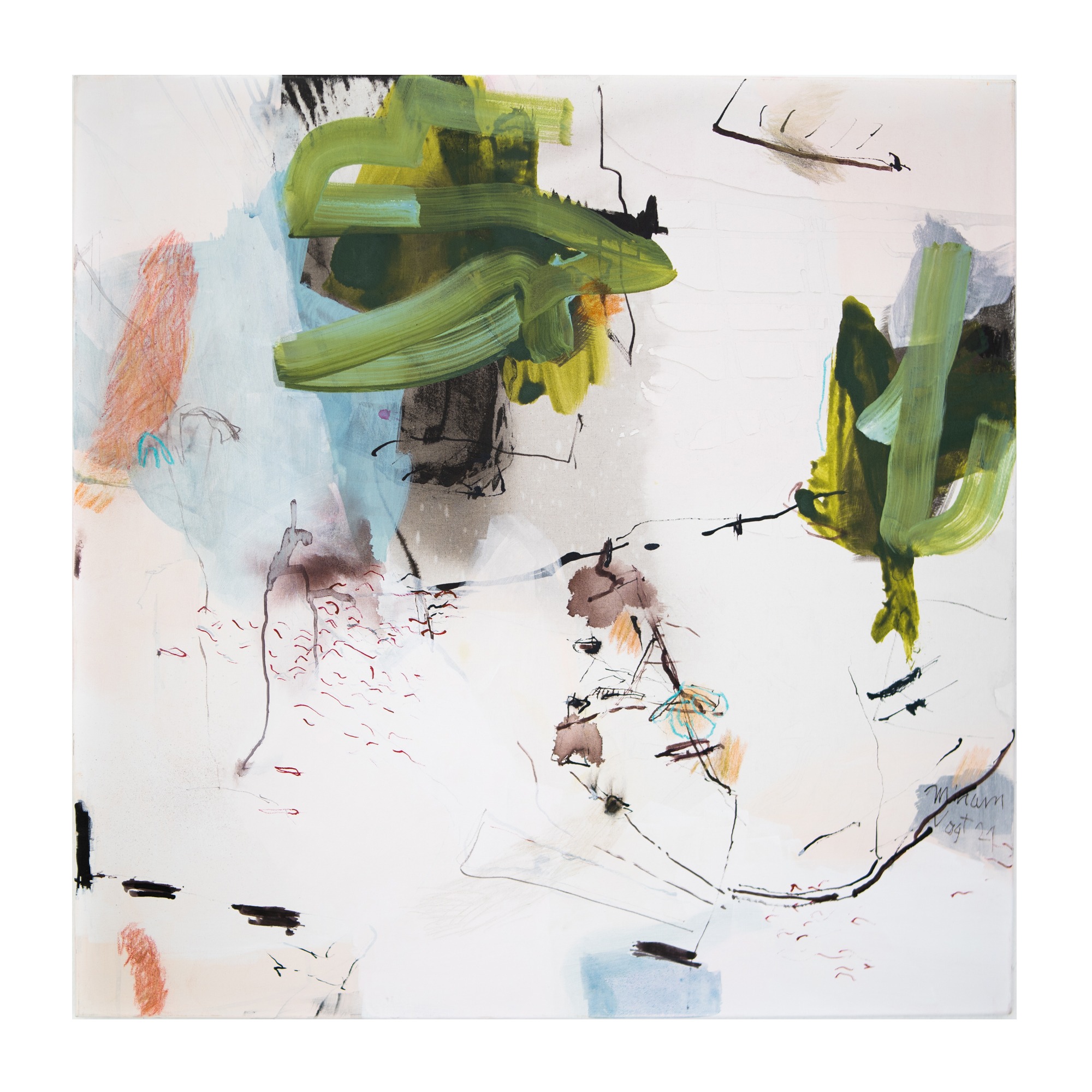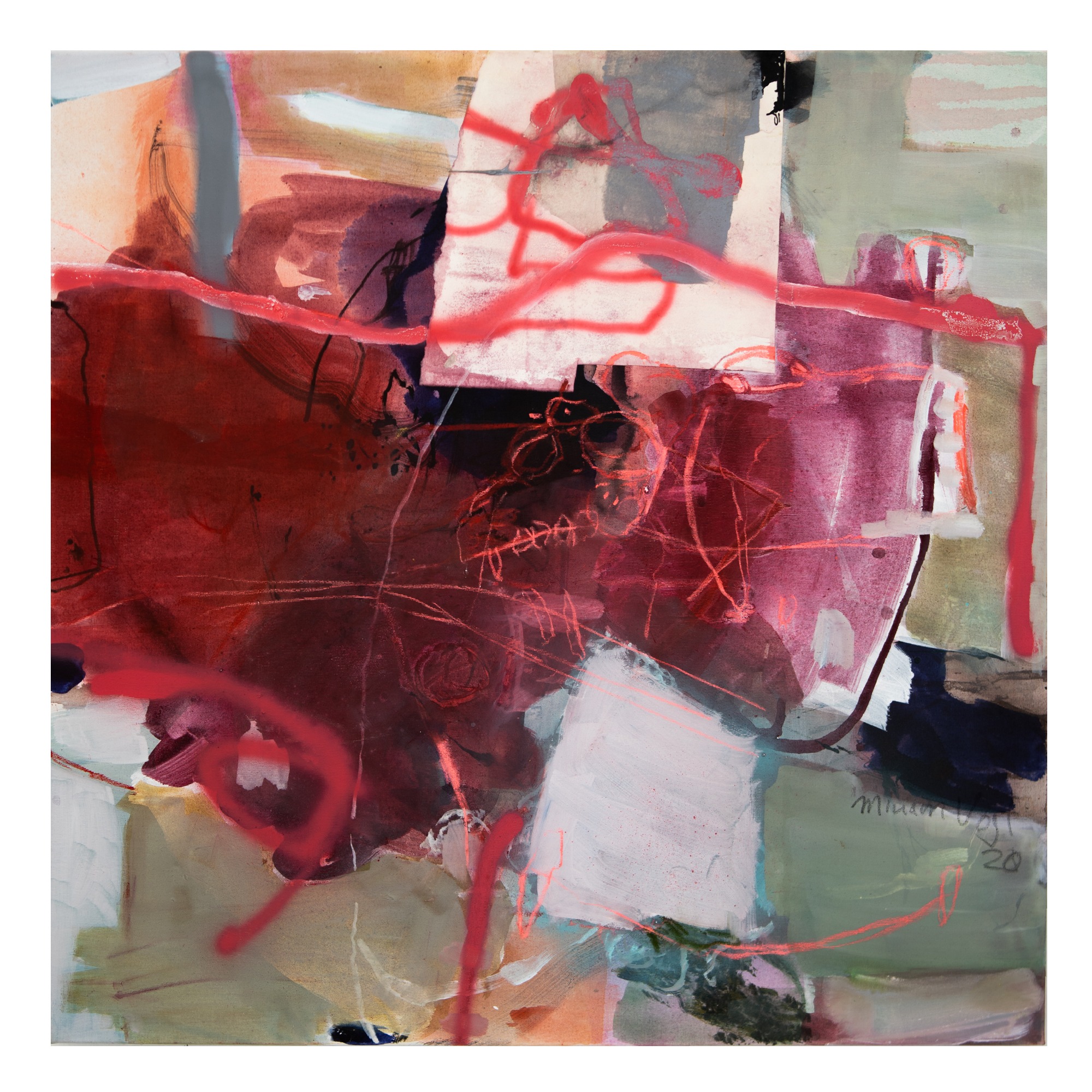 Wichtig ist mir dabei, die verschiedenen Ebenen zu erhalten. Es ist nicht so, dass die oberste Bildidee siegt und der Rest dann eingearbeitet wird. Meine Malerei lebt davon, dass der gesamte Prozess sichtbar bleibt.“