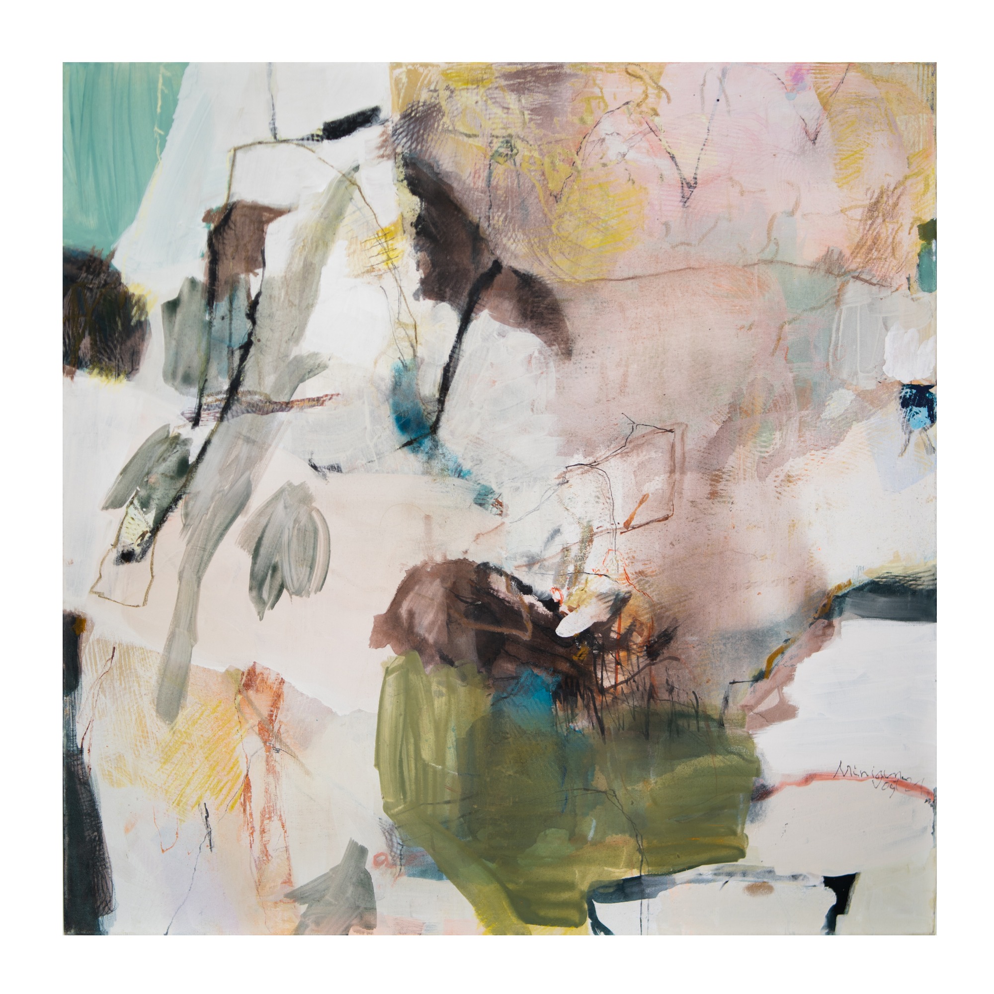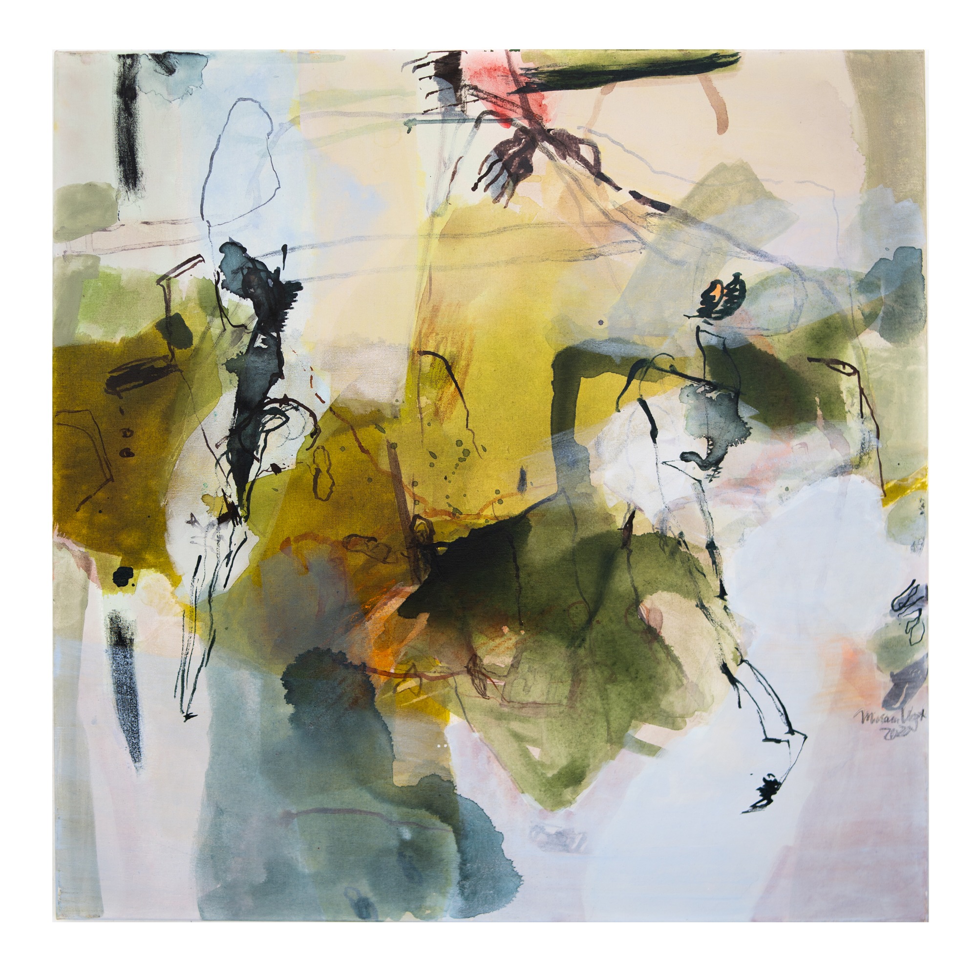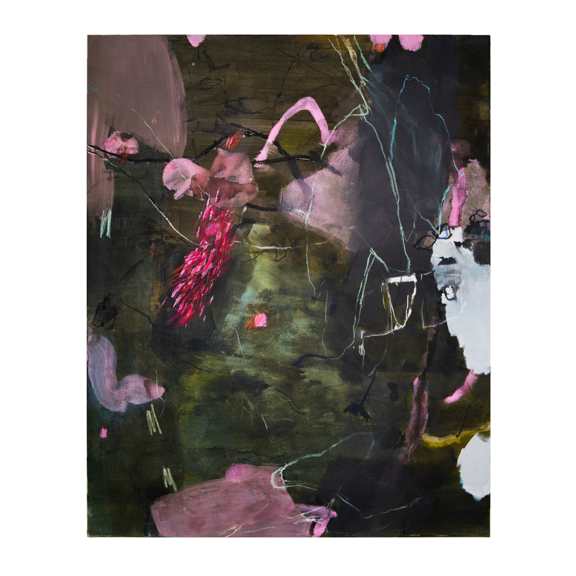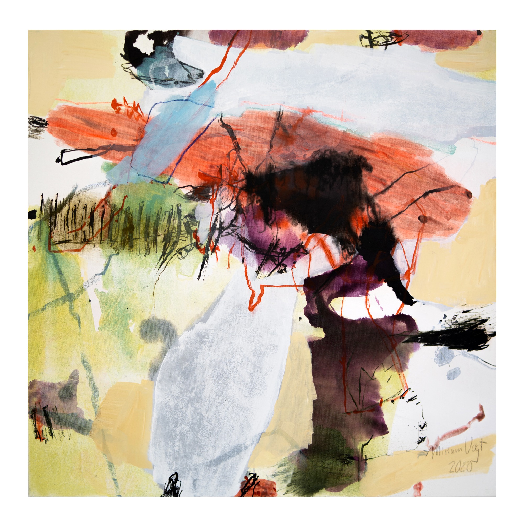 Wichtig ist mir dabei, die verschiedenen Ebenen zu erhalten. Es ist nicht so, dass die oberste Bildidee siegt und der Rest dann eingearbeitet wird. Meine Malerei lebt davon, dass der gesamte Prozess sichtbar bleibt.“